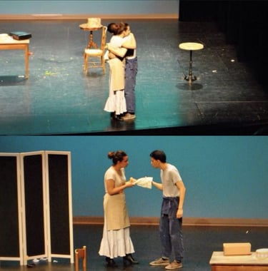 I have been practicing theater for about ten years. I have performed in plays such as Cinderella (J. Pommerat), A Midsummer Night's Dream and The Tempest (W. Shakespeare), Que d'espoir ! Cabaret (H. Levin), The Intervention (V. Hugo), and others.