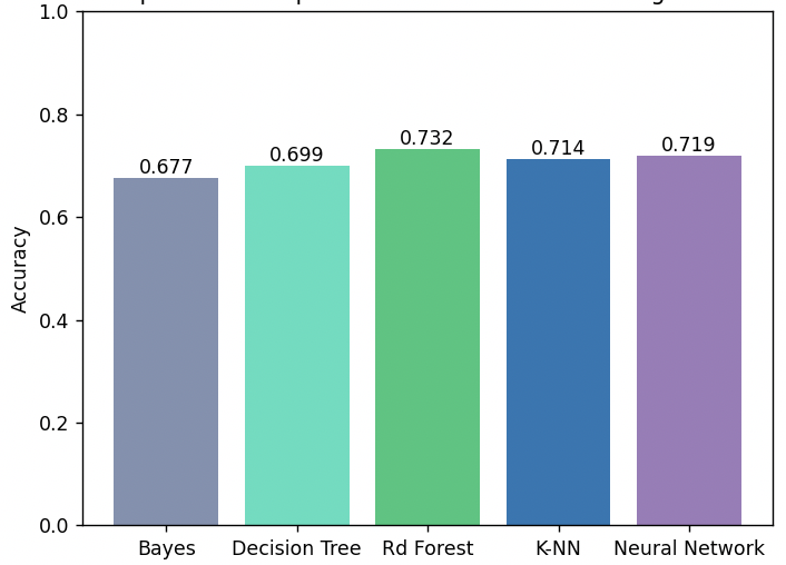 Nous avons exploré diverses techniques de machine learning et de visualisation de données, telles que l'analyse en composantes principales (PCA), les k-plus proches voisins (KNN), l'inférence bayésienne, et les réseaux de neurones. Un point fort de notre étude a été l'utilisation de l'algorithme Random Forest, qui s'est avérée particulièrement efficace pour ce type de projet.