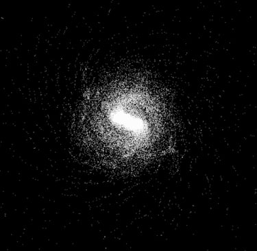 Étant donné la complexité de simuler l'interaction de chaque étoile individuelle dans une galaxie (environ 10^11 étoiles), nous avons utilisé une méthode N-corps appelée particule-maille ou chaque particule stellaire représente non pas une étoile mais un nuage d’étoiles permettant ainsi d’échantillonner l’espace des phases et de résoudre ensuite l’équation de Vlasov-Poisson sur une grille.